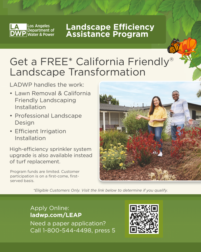 FREE Landscape Renovation for Qualifying Customers adevandry February 6, 2026 No Comments LADWP is offering qualifying customers a FREE landscape makeover. Lose your water-guzzling lawn and get… Read more
